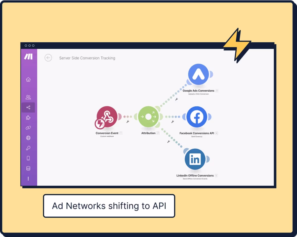 نحن نتولى إعداد أحداث التحويل من جانب الخادم عبر شبكات إعلانية مختلفة بما في ذلك إعلانات Google وMeta وLinkedIn وTikTok وBing. تعمل هذه الخطوة على تحسين أداء الإعلانات من خلال التتبع الأكثر موثوقية، وتقليل الاعتماد على ملفات تعريف الارتباط من جانب العميل، وتعزيز تحسين الإعلانات باستخدام بيانات جديرة بالثقة.